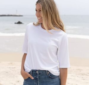 I’ve been on the hunt for the perfect ¾-sleeve white tee, and I finally found it. The fit is flattering, the fabric feels beautiful, and the quality is exceptional. It’s one of those quiet basics that makes everything you pair it with look better.